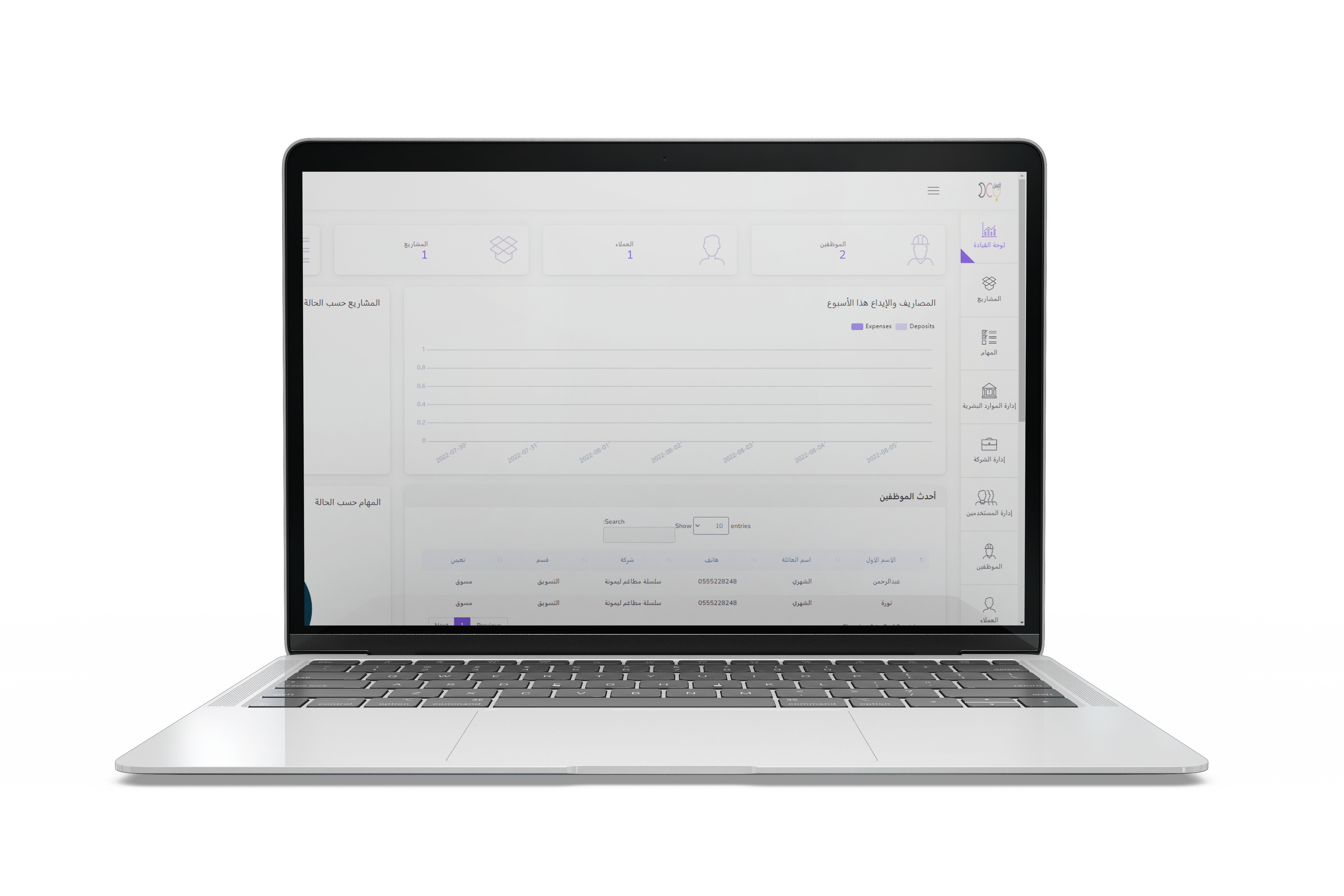 الحضور والآنصراف والمهام والمشاريع